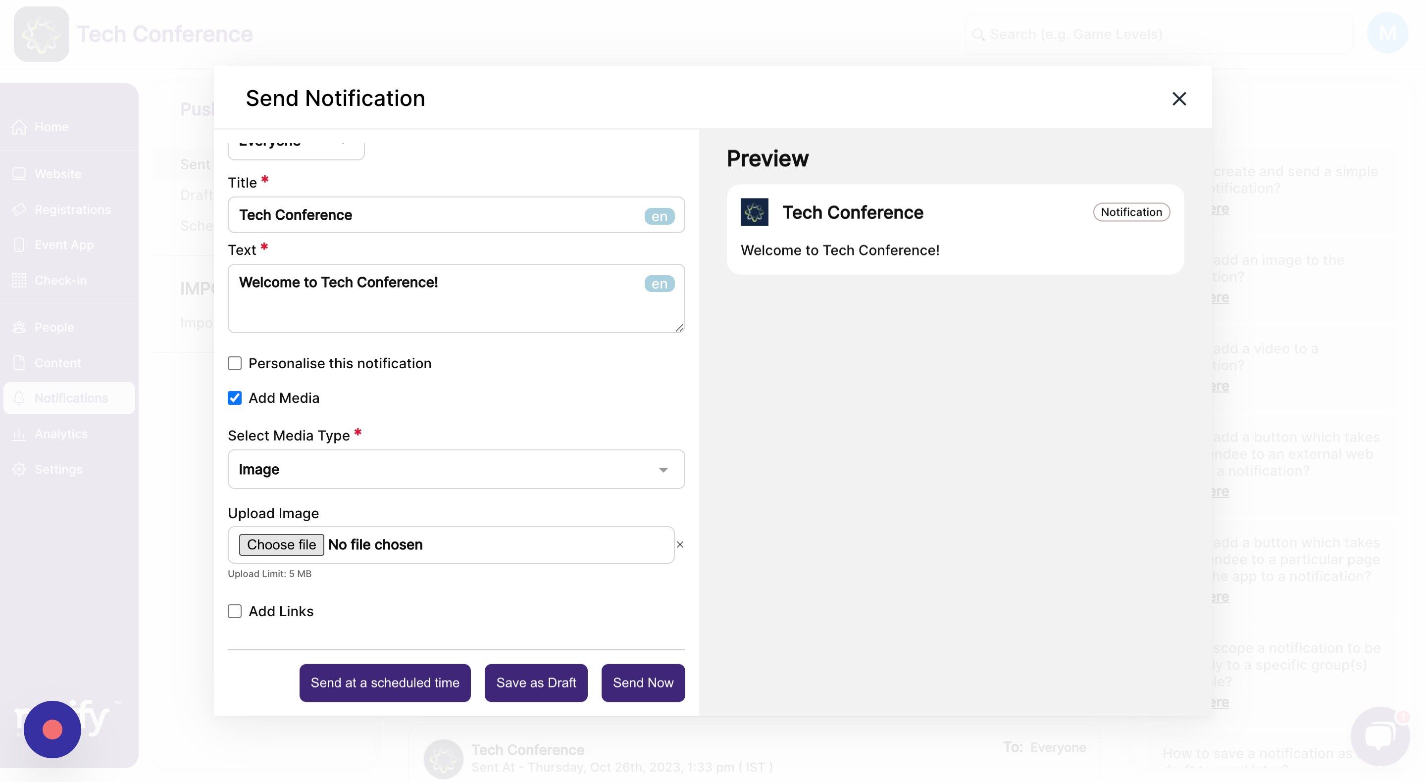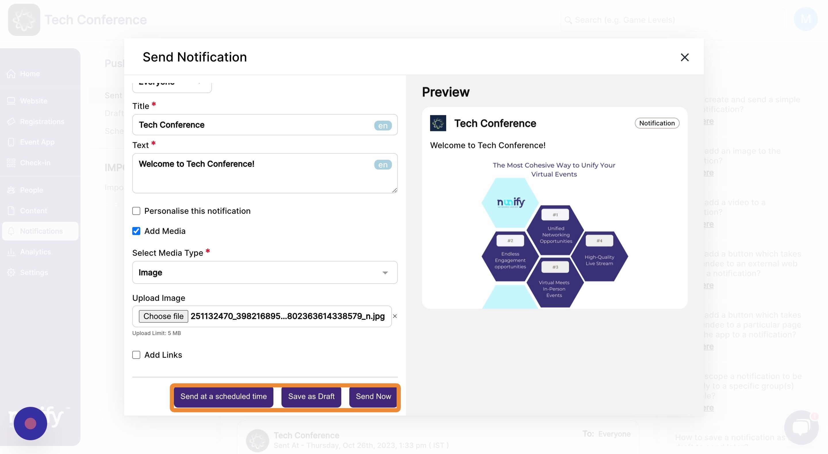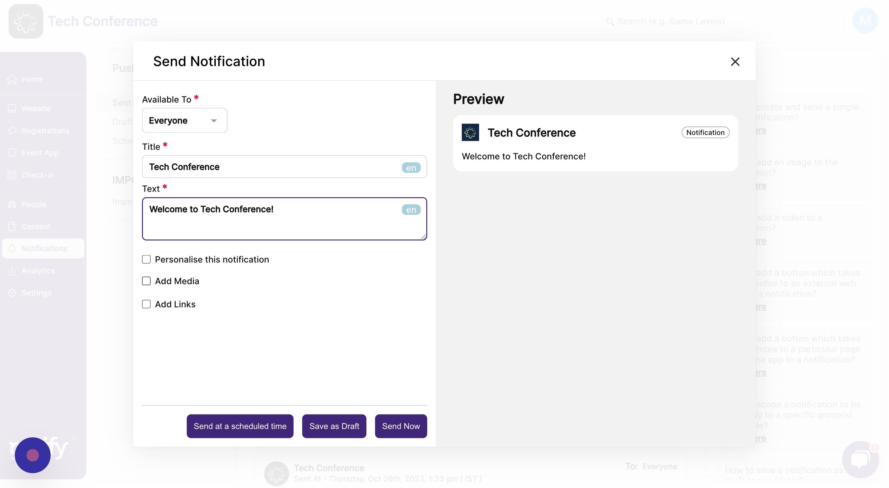 7. You can then send the notification instantly, save this notification as a draft, or schedule it to go at a later time.