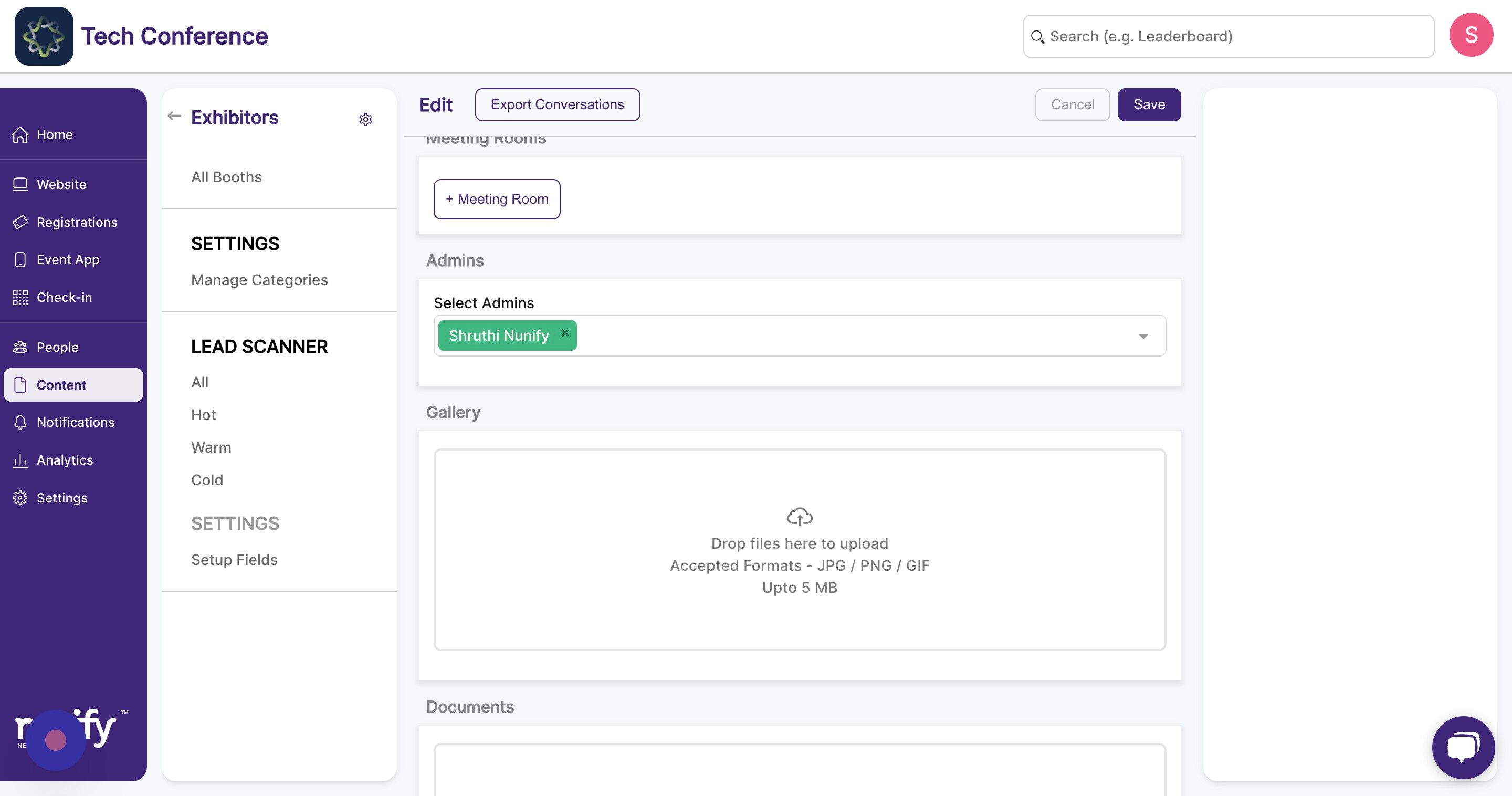 6. Images to the exhibitor gallery can only be uploaded after an exhibitor is created.