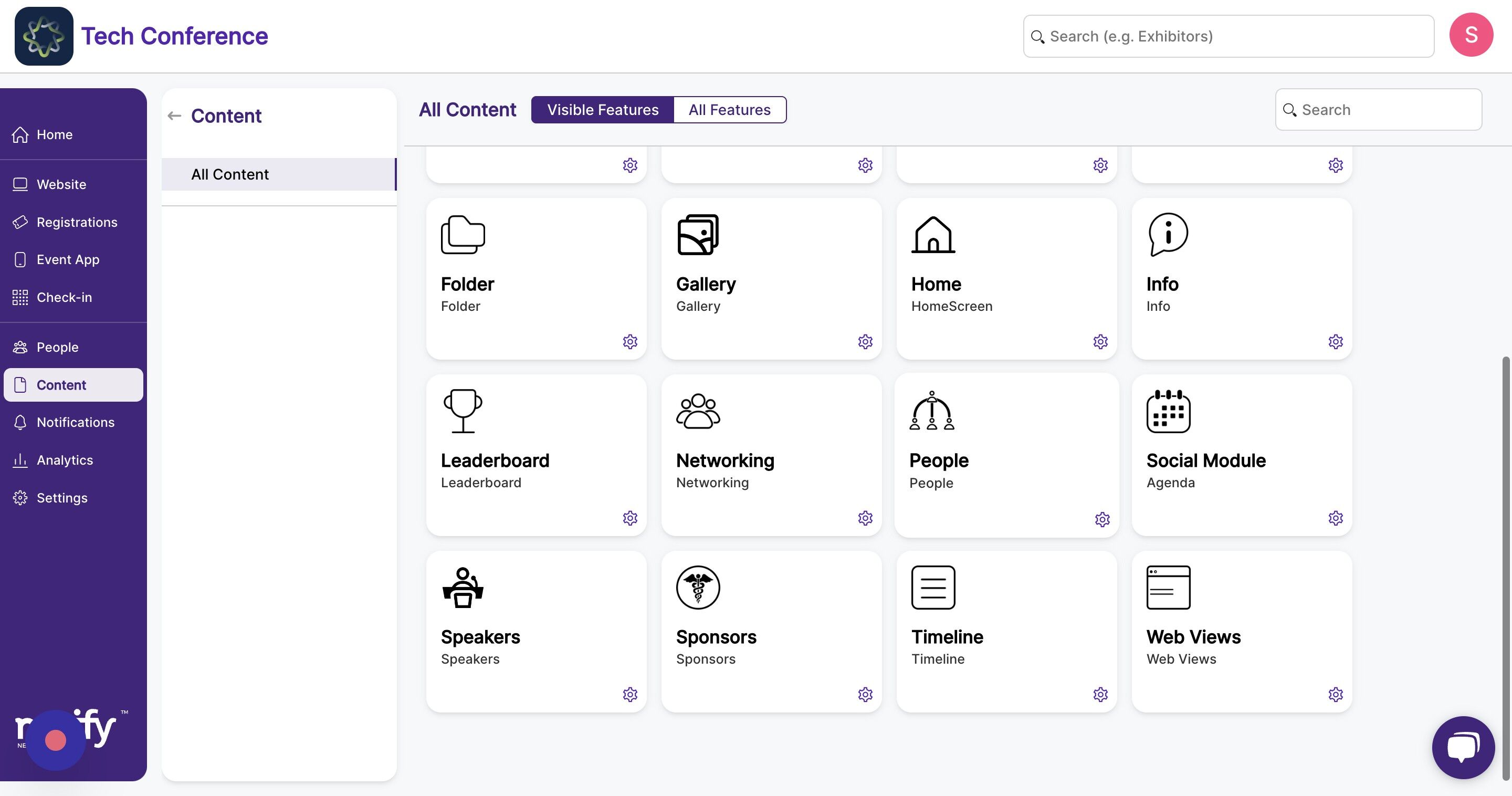 1. In the event dashboard, click on the "Content" tab from the sidebar.