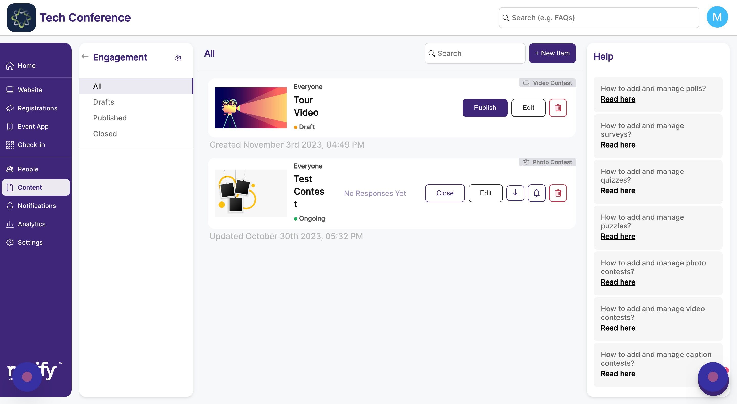 5. Once published, the video contest will be visible to your attendee on the event app.
