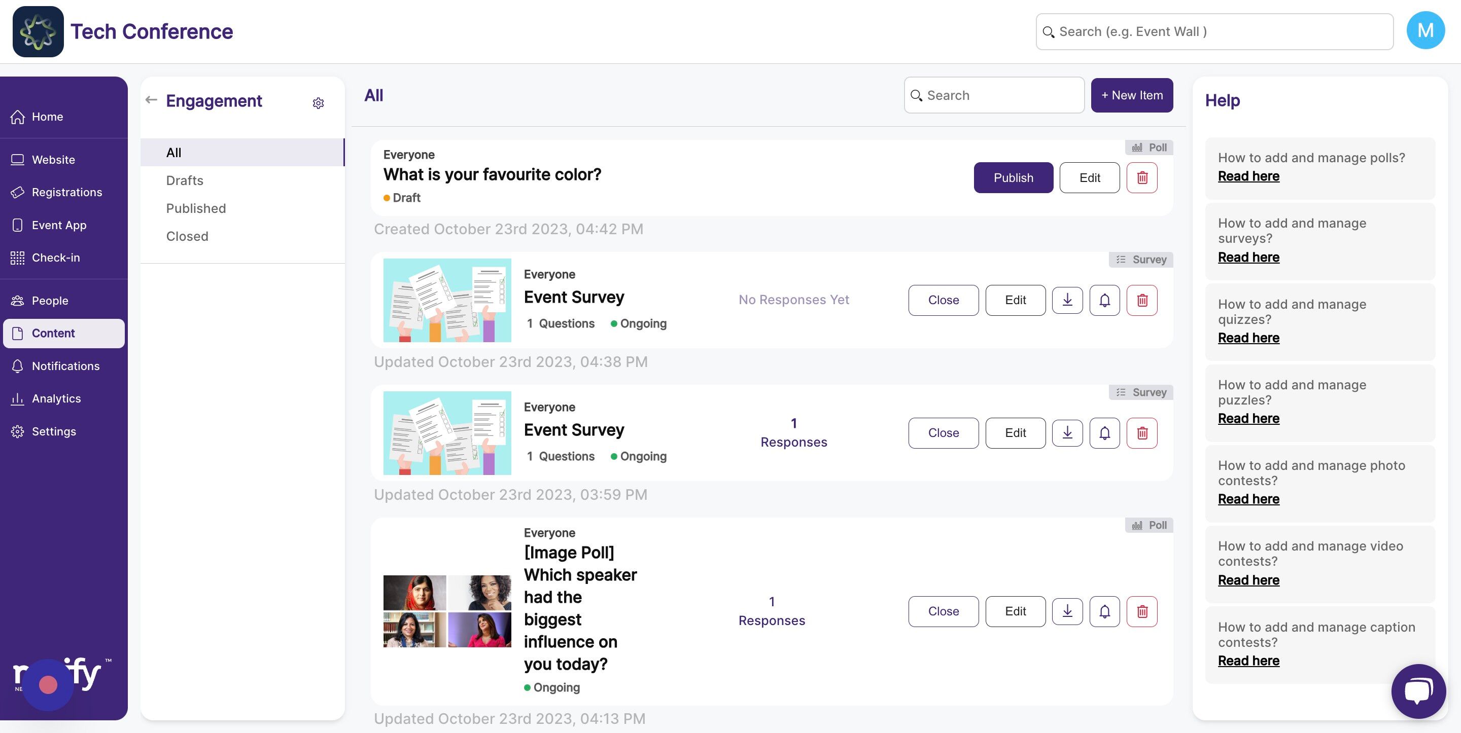 2. Select the “Engage” page. This will list all the engagement items, including draft polls.