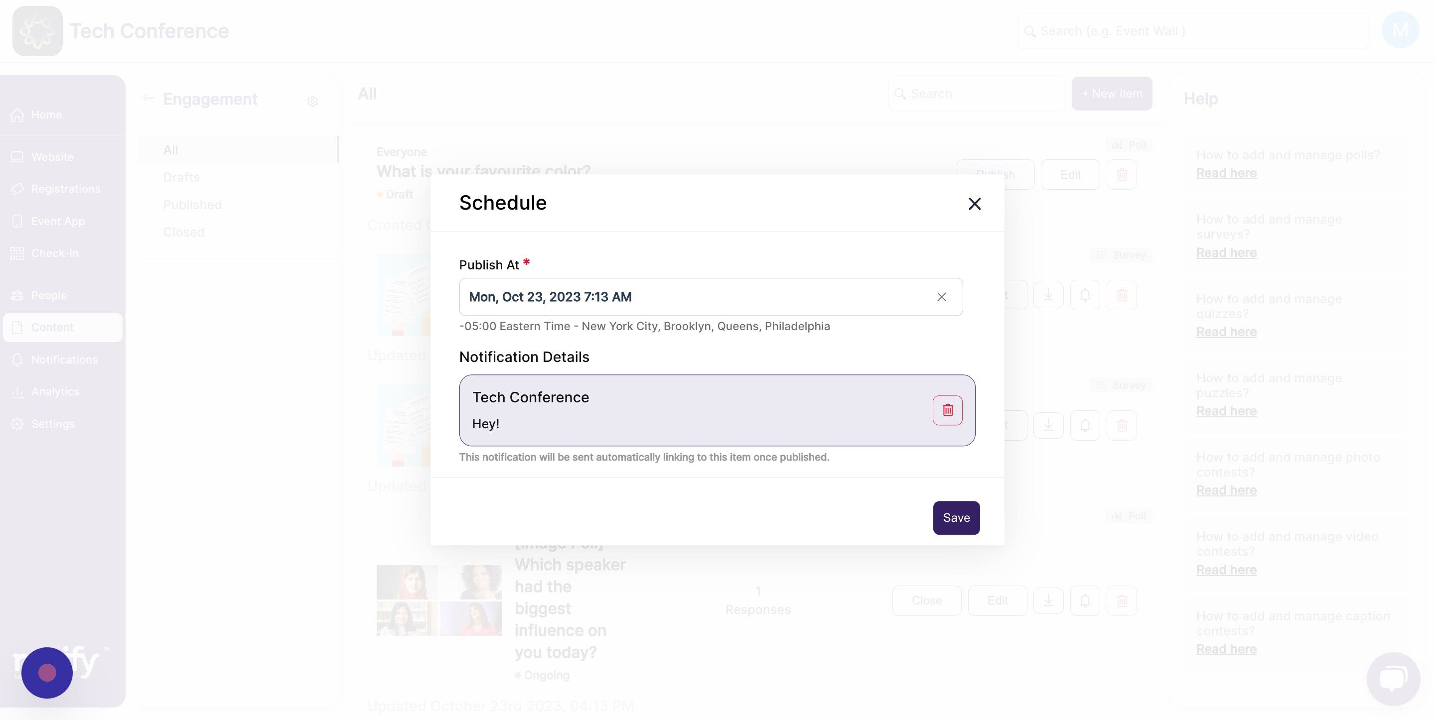 3. Find the draft poll you want to schedule publish, and click on the “Publish” button on the poll card.