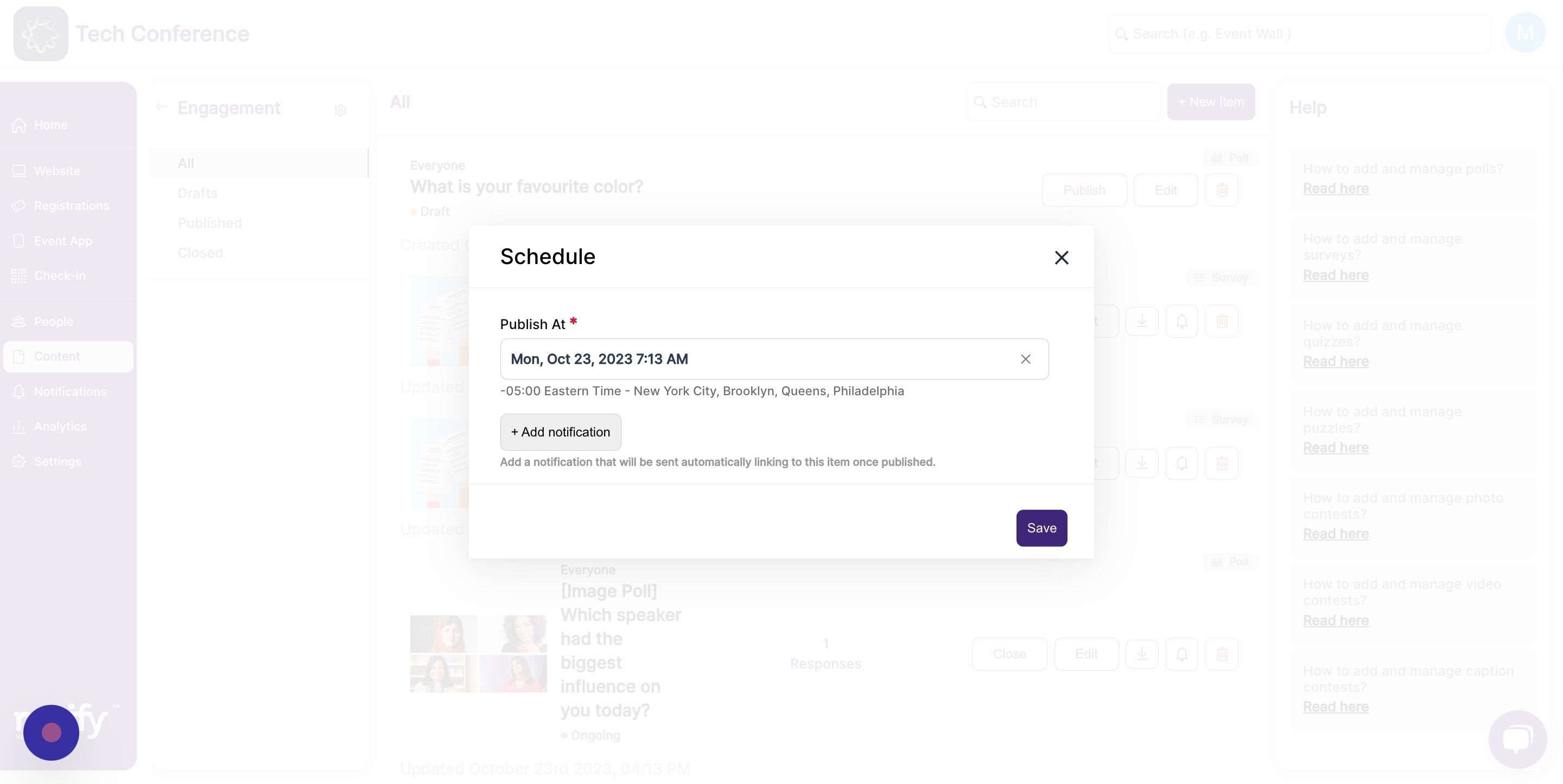 6. You can also add a notification that is automatically sent linked to the poll once published.